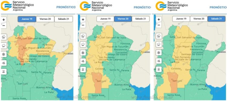La vigencia de la alerta abarca desde las últimas horas de este jueves 19 a la madrugada del viernes 20; y posteriormente sábado 21 por la mañana y la noche. Se estima que hasta comienzos de la próxima semana el centro y norte argentino seguirá influenciado por condiciones húmedas y cálidas, propensas a generar más periodos de inestabilidad. Este jueves, la máxima llegó a 41 grados y con cielo mayormente despejado.