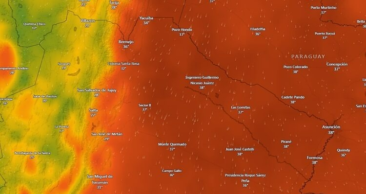 El Servicio Meteorológico Nacional mantiene vigente la alerta amarilla por altas temperaturas emitida desde ayer domingo 15 para los departamentos del norte y noreste salteño.